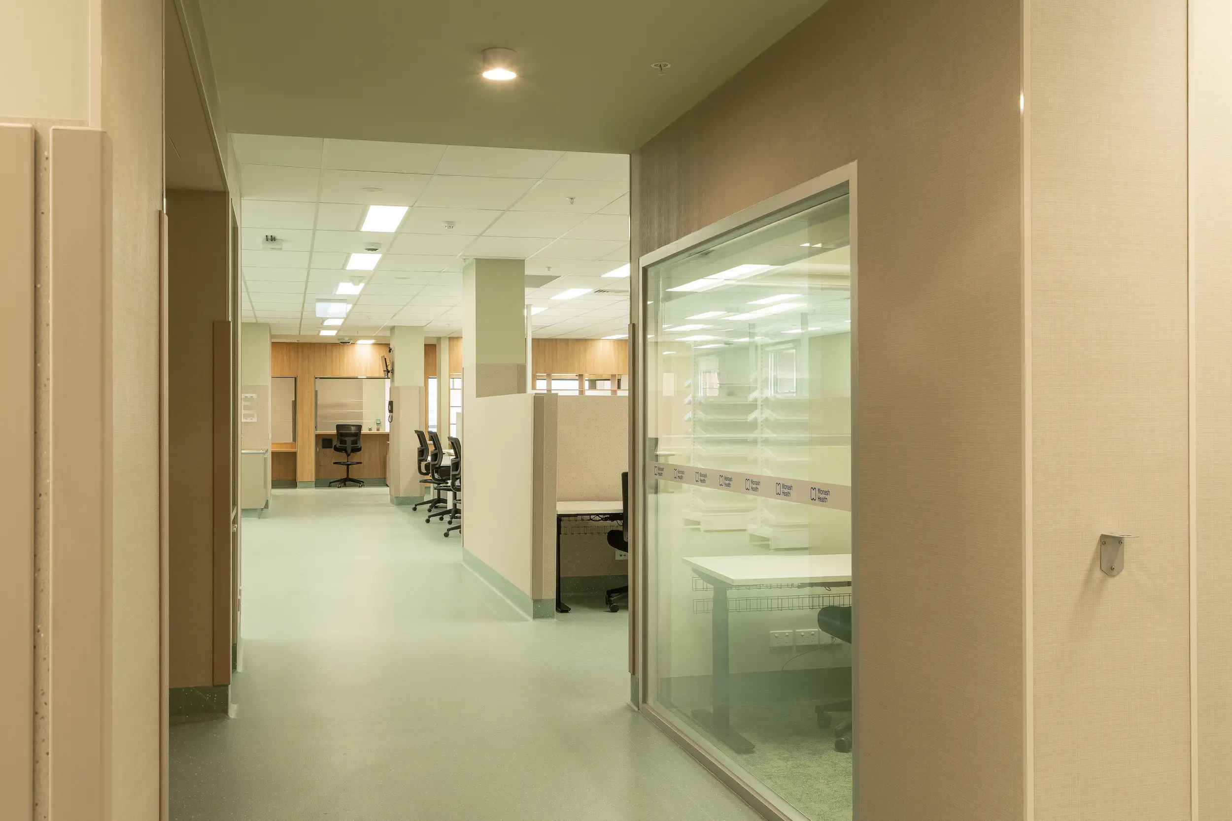 Grace Build successfully relocated the Monash Health Kingston Pharmacy to a purpose-built facility in Building 11. This $2.2M project involved a full internal demolition and fit-out within a live hospital environment, managing complex challenges like asbestos removal and infection control while upgrading critical building systems to meet Victorian Pharmacy Authority standards.